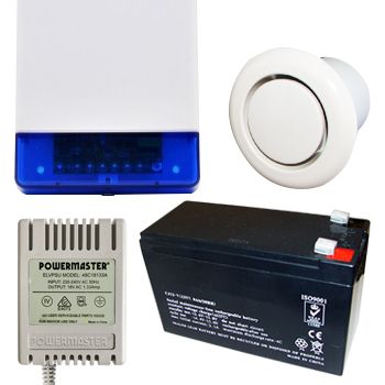 NETDIGITAL, Alarm accessory bundle, includes Slimline Square Style Cover Siren/Horn with Strobe & Tamper switch (WP16), 12V 7AH Battery, 18V AC 1.33A plug pack, Flush Mount screamer