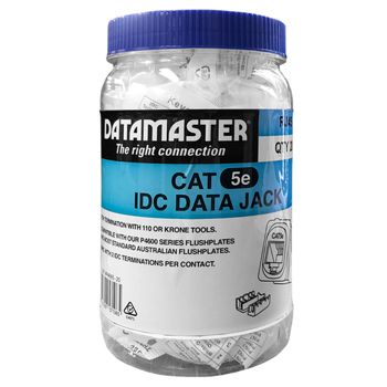 - DATAMASTER, 'Clipsal' Keystone Jack, 8P Punchdown style, Cat5E (T568A/B), suits Clipsal plates, JAR OF 20