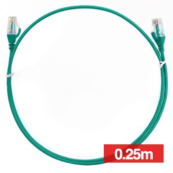 - 4CABLING, Slim Patch lead, Cat6 with RJ45 connectors, 0.25m cable length, Green.