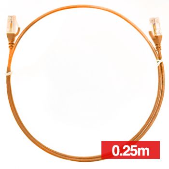 - 4CABLING, Slim Patch lead, Cat6 with RJ45 connectors, 0.25m cable length, Orange.