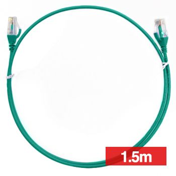 - 4CABLING, Slim Patch lead, Cat6 with RJ45 connectors, 1.5m cable length, Green,