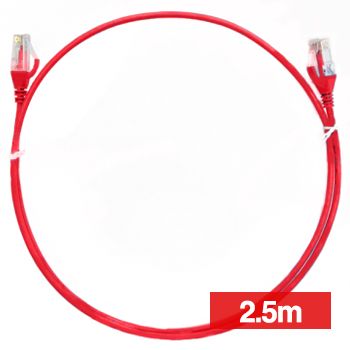- 4CABLING, Slim Patch lead, Cat6 with RJ45 connectors, 2.5m cable length, Red.