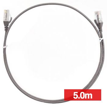 - 4CABLING, Slim Patch lead, Cat6 with RJ45 connectors, 5m cable length, Grey.