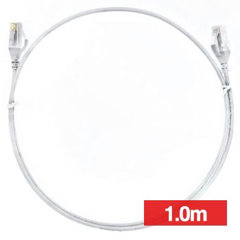 - 4CABLING, Slim Patch lead, Cat6 with RJ45 connectors, 1.0m cable length, White.