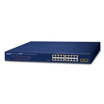 PLANET, 16 Port Gigabit POE Switch, all 16 ports POE Gigabit, 15.4w per port, 2x SFP ports, 440mm x 208mm x 44mm (W x H x D)