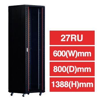 - PSS, 27RU 19" Rack Cabinet, Floor mount, 600 (w) x 800 (d) x 1388mm (h), With detachable castors & stablizers, Dark grey.