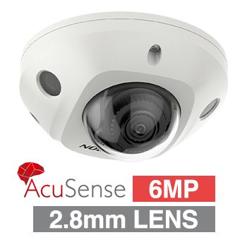 - HIKVISION, 6MP AcuSense G2 HD-IP outdoor Vandal Mini Dome camera, White, 2.8mm fixed lens, 30m IR, WDR, 1/1.8" CMOS, H.265+, IP67, IK08, Tri-axis, 12V DC/POE