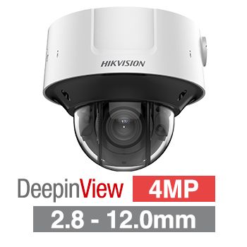 - HIKVISION, 4MP DeepinView HD-IP outdoor Vandal Dome camera, White, 2.8-12mm motorised zoom lens, 30m IR, WDR, I/O (Alarm & Audio), 1/1.8" CMOS, H.265+, IP67, IK10, 12V DC/24V AC/POE