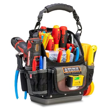 - VETO PRO PAC, Tech Series, Small HVAC technician tool bag, Hard Bottom Open style, 25 vertical tool pockets, Carry handle, Weather resistant fabric, 205(D) x 305(W) x 290(H)mm