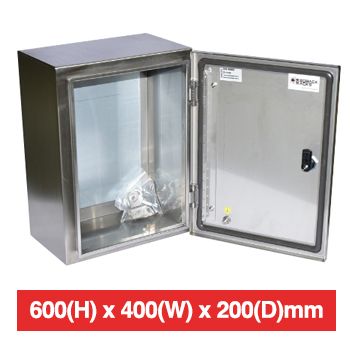 - PSS, Enclosure, Stainless Steel, Weather resistant, IP66 & IK10 rated, 600(H) x 400(W) x 200(D)mm, Includes 2X T- Lock cabinet lock, keyed locks are optional (STP-K2).