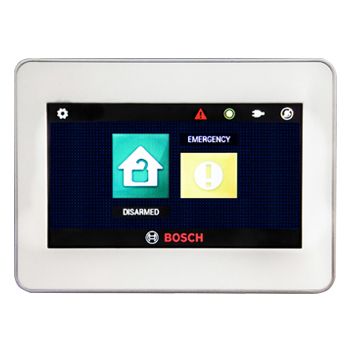 - BOSCH, Solution 2000/3000, Keypad, 4.3" touch screen, Graphic LCD, White, Touch to arm feature, works with older series Bosch panels (Sol 880, 16, etc.)