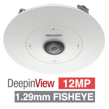 - HIKVISION, 12MP HD-IP In Ceiling Fisheye camera, White, 1.29mm fixed lens, Built in Mic, DWDR, Day/Night (ICR), 1/1.8" CMOS, H.265/H.265+, 12V DC/PoE