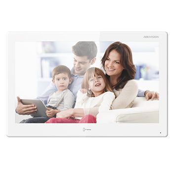 - HIKVISION, Intercom room station, 10" IPS Touchscreen 1024x600, Android OS, Video, Colour, Hands free, 8CH alarm inputs, Call tone mute with indicator, WiFi, White, 12V DC, POE,