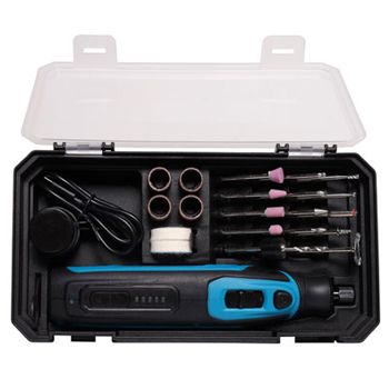 MICRON, Rotary tool, Lithium battery, Adjustable speed, For cutting, polishing, sanding or drilling, Complete with 42 accessories, Rechargable via USB-C, 1 hour battery use.