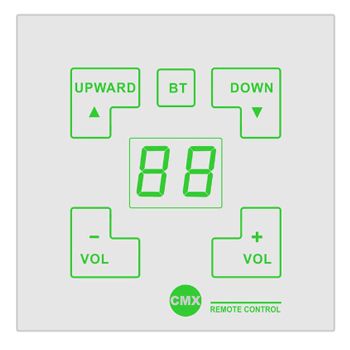 CMX, 6 Zone remote volume control, Source selection and Bluetooth receiver, power from PA Series matrix, Loop through to additional volume controls (6 max), RJ45 connection, 200 metres max.