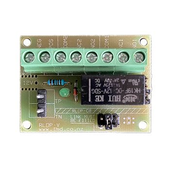 - TMD, DPDT relay, 12/24V DC input voltage (selectable), Relay rated to 1A, 48mm x 35mm, connector pins for the TR800-433BM receiver.
