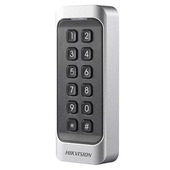 - HIKVISION, Pro series, Keypad & card reader, Mullion style, Thin profile, Built in buzzer, Two colour LED, Mifare compatible, 26bit/34bit Wiegand out, RS485, 12V DC, 160mA.