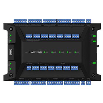 - HIKVISION, 4 Door Network access controller (NO CABINET), Browser support, Exp to 128 doors, 4x relays, 20x inputs, 4x alarm outputs, 4x Wiegand inputs, 100,000 users, 600,000 events, RS-485, 12V DC.