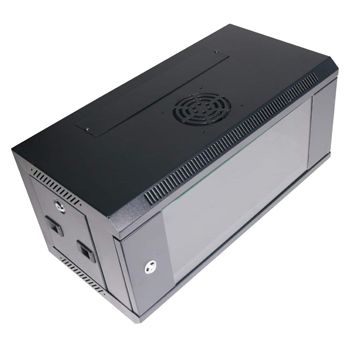 - NETDIGITAL, 4RU 19" Rack Cabinet, Wall mount, 600(W) x 279(H) x 300(D)mm, With lockable glass front door and removable lockable side doors, Dark grey powder coated finish.