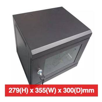 - NETDIGITAL, 4RU 10" Rack Cabinet, Wall mount, 355(W) x 279(H) x 300(D)mm, With lockable glass front door and removable lockable side doors, Dark grey powder coated finish.