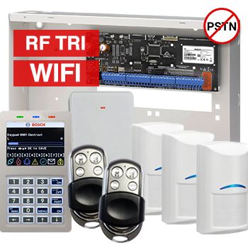 - BOSCH, Solution 6000, Alarm kit, Includes CC615PB IP panel, CP737B Wifi Prox LCD keypad, 3x RFDL-11 wireless Tritech detectors, RFRC-STR2 Radion receiver, 2x HCT4UL transmitters