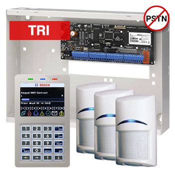 - BOSCH, Solution 6000, Alarm kit, Includes CC615PB IP panel, CP736B Prox LCD keypad, 3x ISC-BDL2-WP12G Tritech detectors