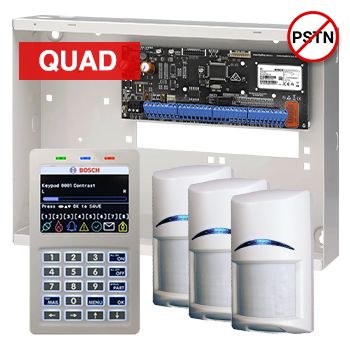 - BOSCH, Solution 6000, Alarm kit, Includes CC615PB IP panel, CP736B Prox LCD keypad, 3x ISC-BPQ2-W12 Quad PIR detectors