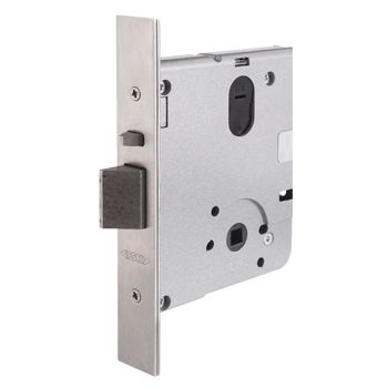 Easy on-site configuration: Single-sided locking (Vestibule) / Double-sided locking (Combination). Power to lock (Fail safe) / Power to open (Fail secure). Left hand / Right hand operation. Factory set: Vestibule, 60mm backset, Fail safe, Left handed