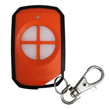 - ELSEMA, PentaFOB Transmitter, 4 Channel, Hand held pendant/keyring, 433 MHz FM signal, Includes 3.3V battery, Orange