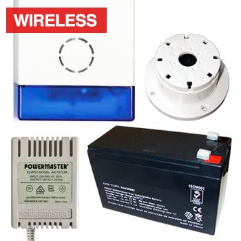 - NETDIGITAL, Alarm accessory bundle, includes WP70A Battery Powered Wireless Siren & Strobe, 7AH Battery, 18V AC 1.33A plug pack, Top Hat screamer