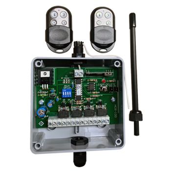 IP56 weather resistant. Standalone wireless 4 channel receiver kit. 4x SPDT outputs available to control external devices. For use with HCT4 transmitters (2x included). Code hopping technology for secure RF transmission.