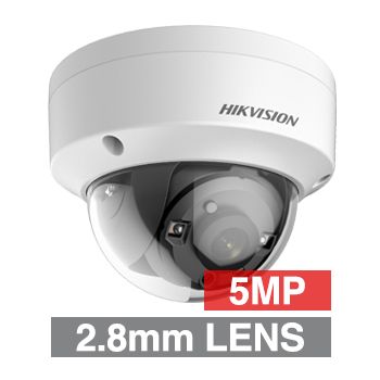- HIKVISION, 5MP Analogue HD outdoor Vandal Dome camera, White, 2.8mm fixed lens, TVI/AHD/CVI/CVBS, 30m IR, 130dB WDR, Day/Night (ICR), IP67, IK10, Tri-axis, 12V DC