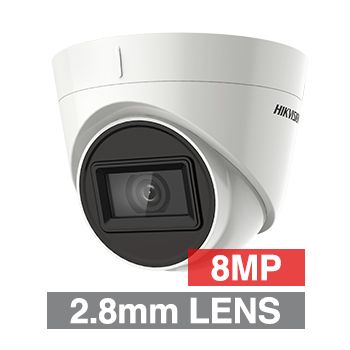 - HIKVISION, 8MP Analogue HD outdoor Turret camera, White, 2.8mm fixed lens, TVI/AHD/CVI/CVBS, 60m IR, 130dB WDR, Day/Night (ICR), IP67, Tri-axis, 12V DC