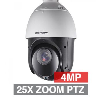- HIKVISION, 4MP IP Outdoor IR PTZ camera, 100m IR, 25x Zoom (4.8 - 120mm lens), 1/2.8" CMOS, 0.005Lux (sens-up), H.265/H.265+, IP66, 12V DC/POE