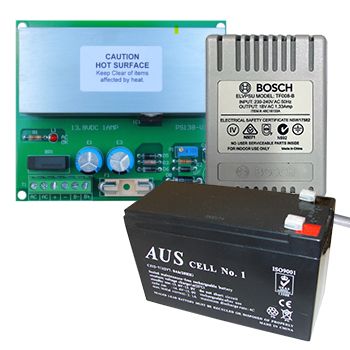 NETDIGITAL, battery backup power supply kit, includes 13.8V DC 1 Amp Power Supply PCB with variable voltage adjustment & fuse protection. Comes with plug pack & 7ah battery.