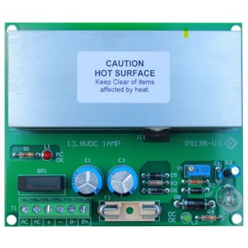 NETDIGITAL, 13.8V DC 1 Amp Power Supply module, battery charge output, Variable voltage adjustment, Fuse protection, requires 16V AC plug pack