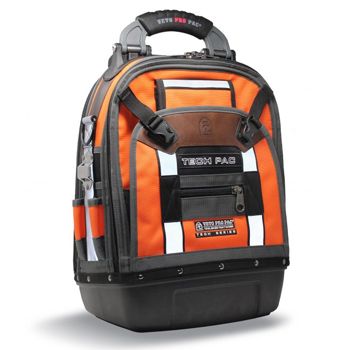 - VETO PRO PAC, Tech Series, Hi Visibility Orange Back pack, HVAC technician tool bag, Closed style, 56 tiered pockets, 4 storage platforms, Weather resistant base & fabric, 361(L) x 248(W) x 546(H)mm