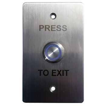 - NETDIGITAL, Switch plate, Wall, Stainless steel, Labelled "Press to Exit", With stainless steel illuminated blue 22mm push button, N/O, N/C contacts, 12V DC