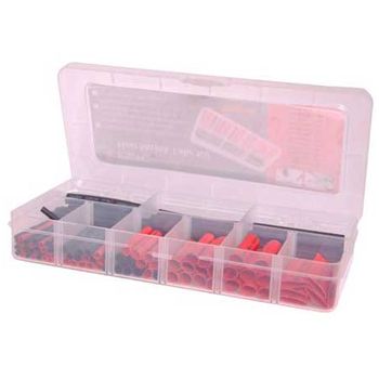 106 piece Heat Shrink Tubing Pack, Comes in 3.2, 4.8, 6.4, 7.9 & 9.5mm diameter sizes, 45mm & 75mm lengths, comes in carry case